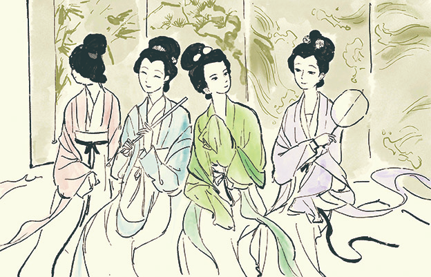 我们从这个角度来看这首词。“晚妆初了明肌雪。春殿嫔娥鱼贯列”,你要欣赏李后主精神感情完全投入的那种意兴。“意”就是他的情意,“兴”就是他的兴趣。“晚妆初了明肌雪”,写的是刚刚化完妆的美丽女孩,“春殿嫔娥鱼贯列”,第二句俨然有一个歌舞的队形出现了。他写的不但是意兴的发扬,还是一种盛美。