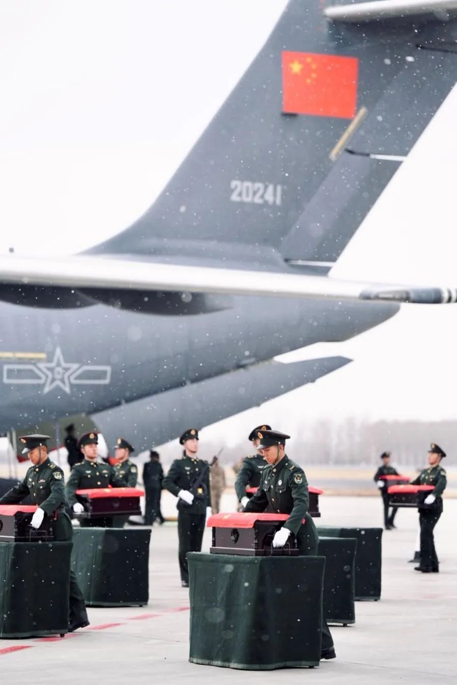 在韩志愿军烈士遗骸归国时