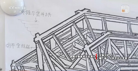 不仅自制模型,现场手绘也是每节课程的点睛之笔。与当下普遍流行制作“短平快”视频不同,王永先每次讲解的背后,都是在古建筑研究领域中,以年为单位的深耕和沉淀。吸引着古建爱好者对这些硬核知识的好奇。
