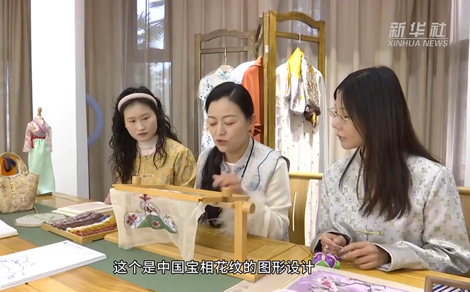 在河南洛阳“清心唐”洛绣美学空间,耿青青正在教授徒弟们,亮丽的丝线随绣花针穿引其中,一个个栩栩如生的形象展现出来。