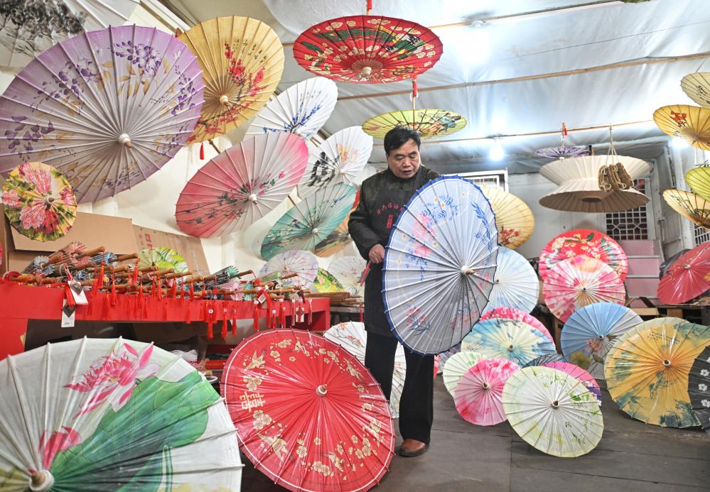 “横平竖直皆风骨,深浅均匀共进退”是四川泸州分水油纸伞的制伞要义。一把油纸伞要经过锯托、穿绞、糊纸、烤伞、上油等九十多道工序才能完成。