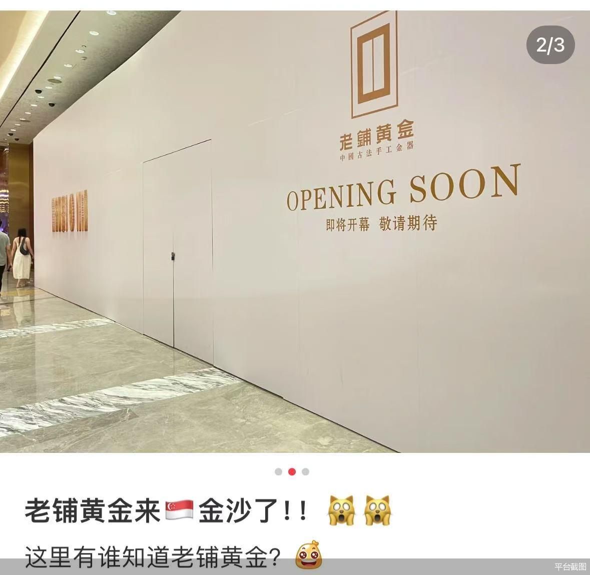 老铺黄金正在将目光投向海外。近日,有多名消费者在社交媒体发布图文称,老铺黄金新加坡新店已经围挡。从品牌官网现有的门店分布来看,新加坡门店或将是品牌的海外首店,据消费者提供的图片和视频,上述门店位于新加坡滨海湾金沙酒店,该酒店也是新加坡地标性建筑和高端商业体之一,爱马仕、香奈儿以及路易威登等奢侈品品牌云集。