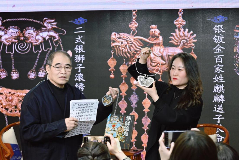 新书发布会上,王金华为现场观众讲述了自己用1元钱起家的故事。1968年,王金华来到山西夏县插队时,在一个市集上花1元钱购得一幅绣着“莲生贵子”图案的耳罩。自此之后,他便开启了长达五十多年的收藏生涯,如今,他家中早已摆满了从世界各地收来的传统首饰。