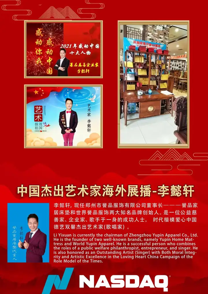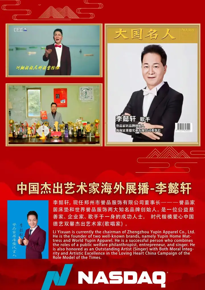 2025年3月7日李懿轩被中国杰出艺术家海外特别推荐,并荣登“美国纽约时代广场纳斯达克大屏幕展播。