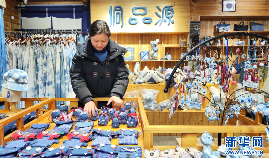 自7岁起,陆勇妹便跟随祖母学习纺纱和靛染技艺。今年40岁的她已经是非遗蓝靛染的省级代表性传承人。“我们侗家人崇尚自然,从自然中选取有用的植物制成染料,生产出来的蓝靛染工艺品古朴又时尚,还非常环保。”陆勇妹说。