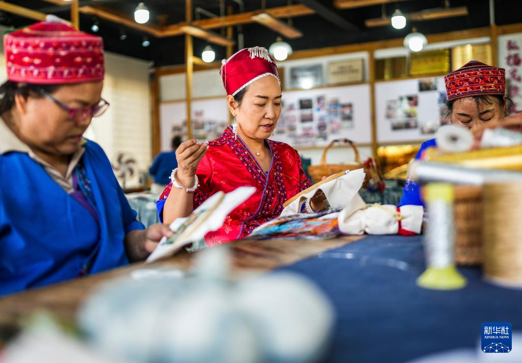 在位于贵州省施秉县的舞水云台非遗工坊进行刺绣创作。