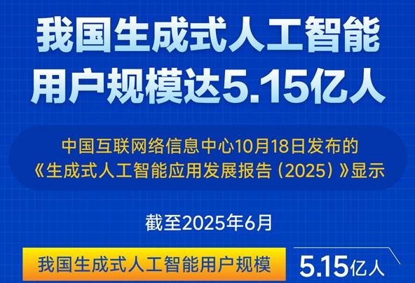 2025(第六届)中国互联网基础资源大会18日在北京举办。中国互联网络信息中心在会上发布的《生成式人工智能应用发展报告(2025)》显示,截至2025年6月,我国生成式人工智能用户规模达5.15亿人,较2024年12月增长2.66亿人,用户规模半年翻番;普及率为36.5%。
