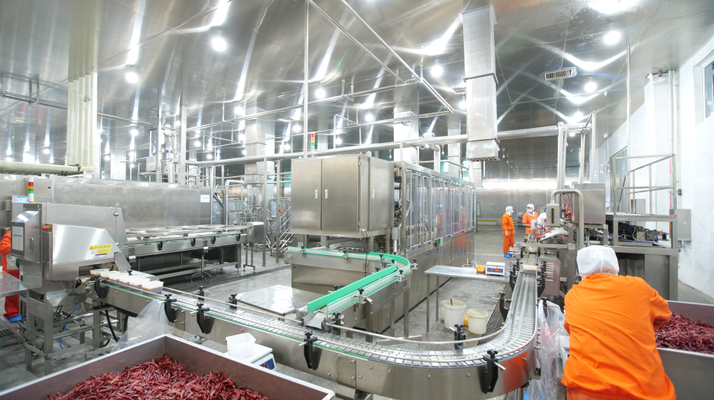 走进位于山东胶州的青岛柏兰集团有限公司辣椒生产车间,一股浓郁的辣椒香味扑鼻而来。新鲜辣椒经过清洗、烘干、研磨、分装等工序后,在自动化生产线上变成调味品。“今年以来,公司生产线保持满负荷运转,目前产值已超10亿元,较去年同期大幅增长。”柏兰集团生产厂长耿孝大说。